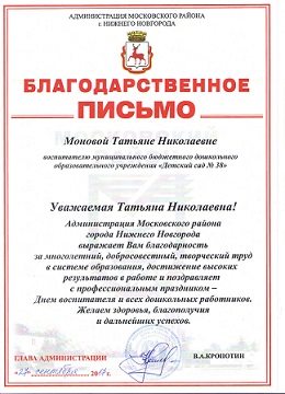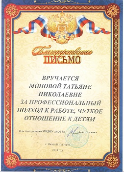 Фамилия Имя Отчество: Монова Татьяна Николаевна